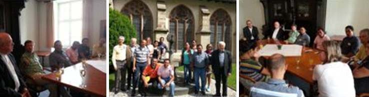 El día jueves 12 de Junio, las comisiones CECAMEX, tuvieron la oportunidad de conocer a Monseñor Alois Schroder quien muy amablemente les explicó la historia que guardan las paredes de la catedral de Paderborn, realizando un recorrido por este bello templo. También tuvieron la oportunidad de reunirse con el Sr. Arzobispo Hans Josef Becker, quien los recibió en su casa de habitación y en donde compartieron las experiencias y expectativas que cada uno de los delegados sostiene en su país. El Sr. Arzobispo les dio una buena bienvenida y bendiciones, con muchos deseos de volver a verlos para la celebración diocesana Kolping, la cual gustosamente celebraría el mismo. |