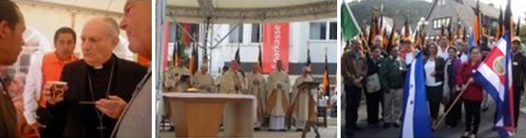 El día domingo 15 de junio se llevó a cabo la celebración del Día Diocesano Kolping, en donde todas las familias Kolping de Paderborn se dieron cita en Altenhundem-Alemania, participando también las delegaciones CECAMEX, quienes en conjunto vivirían la celebración eucarística presidida por el Arzobispo Hans Josef Becker y concelebrada por el Obispo Emérito de la diócesis de Granada-Nicaragua, Monseñor Bernardo Hombach, quien fue invitado de honor para esta ceremonia, además de los preases generales de las distintas zonas. Luego de la santa Eucaristía todos los miembros Kolping participaron de una tarde llena de juegos, sorpresas, sin faltar la música latina presentada por miembros Kolping de Nicaragua, República Dominicana, México, Honduras, y los bailes de Costa Rica, poniendo el sabor Latino. |