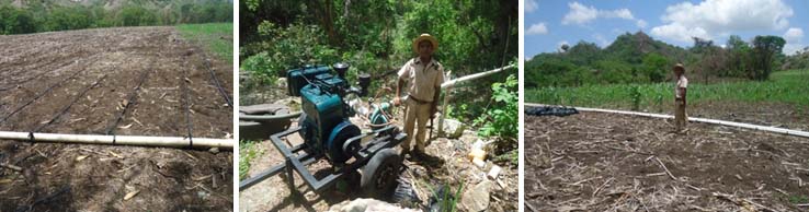 Implementando riego por goteo Grupo Kolping "Amigos de Jesús" Santa Rosa, San Matías, El Paraíso. El cambio climático, y sobre todo el fenómeno de El Niño, ha hecho estragos en el departamento, donde los productores perdieron en su mayoría el 100% de sus cultivos. |