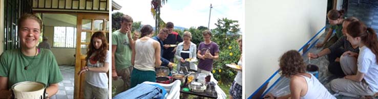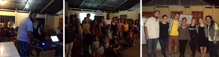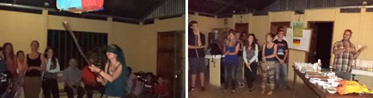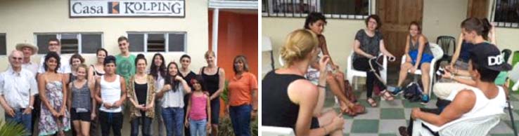 De izquierda a derecha los voluntarios Leo, Ramona, Michel, Katia coordinadora de Kolping, Ruth, Deby y Pascal en su despedida después hacer realizado el voluntariado durante 11 meses en Costa Rica. Les acompañó la Familia Kolping Camino de Amistad y amigos y amigas. A las derecha Leo y Ramona exponiendo los resultados de su trabajo. |