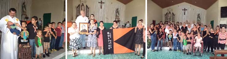 A la izquierda aparece la junta directiva de la Familia Kolping Los Reyes y a la derecha el Kolpinito más pequeño de esta familia con su madre Angélica. |