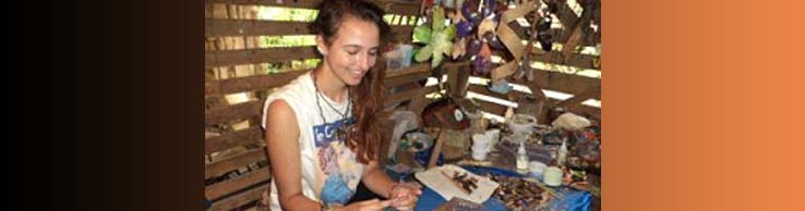 La voluntaria Sofía realizando trabajos de bisutería en su familia en la comunidad de Longo Mai. |