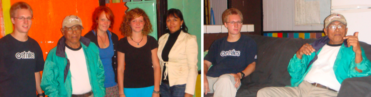 Tilman es un joven voluntario de Alemania, que está realizando su trabajo en la comunidad indígena Térraba. Junto al señor Enrique Rivera, presidente de la Asociación Cultural Indígena, están trabajando en dos temas importantes: la construcción de un museo comunitario para preservar la cultura indígena; y en la defensa del patrimonio cultural indígena. Recorren comunidades tomando el pulso del pueblo respecto a un represa hidroeléctrica que el Instituto Costarricense de Electricidad (ICE) pretende realizar en territorio indígena y a la vez brindan información acerca de las consecuencias que el mismo traería a las comunidades cercanas. La electricidad que produciría esta represa se exportaría, Costa Rica no la necesita; además se considera que la represa destruiría patrimonio cultural y viola el derecho indígena. Los días 15 y 16 de julio del presente año, se llevará a cabo un convivio y una manifestación de concientización acerca del proyecto hidroeléctrico. Las fotos corresponden a la primera presentación de avance de resultados. En la foto aparecen de izquierda a derecha: el joven Tilman, voluntario que llegó a través de Kolping; el señor Enrique Rivera, líder comunal y miembro de la red internacional de museos comunitarios; Suse Lochel y Aylin Quack, voluntarias del Circo Fantazztico; y Katia Fernández, por Kolping. |